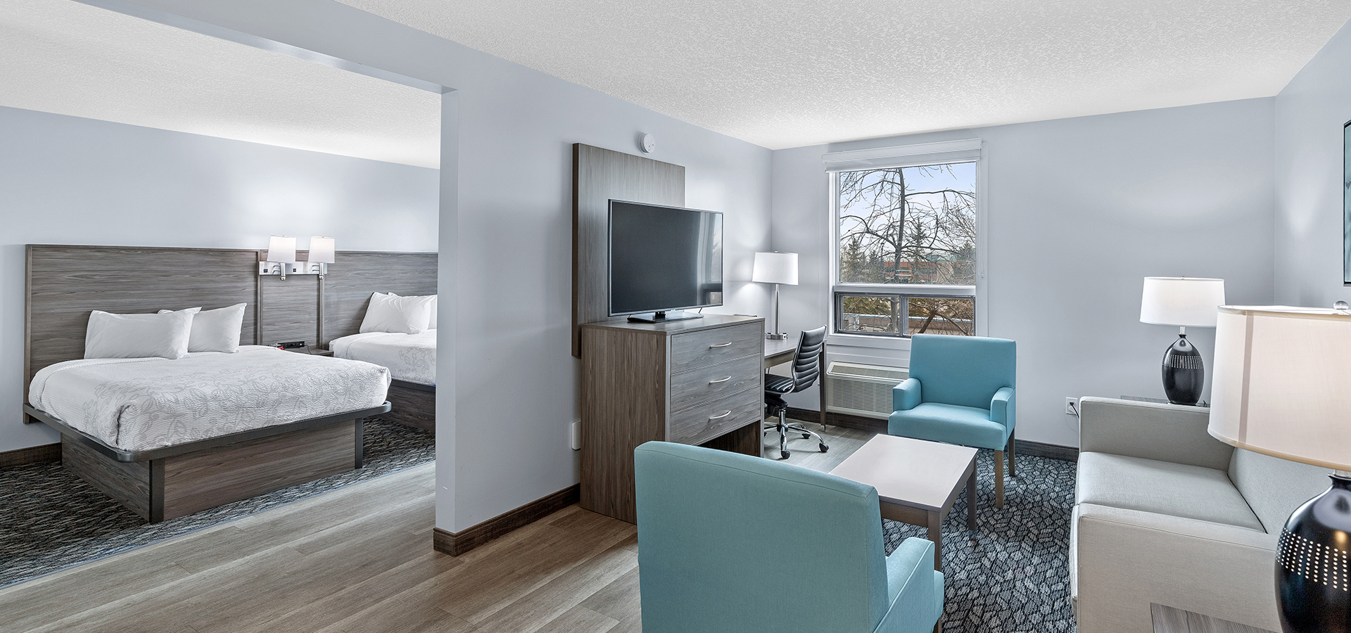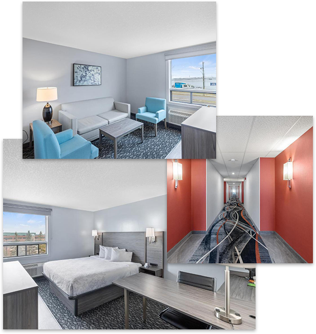 We are set in the Northeast Calgary district located at the Calgary International Airport. The Emerald Hotel & Suites is a 10-20 minute drive from top Calgary tourist attractions including Calgary Zoo, Botanical Gardens, Pre-Historic Parks, Calgary Tower, Calgary Stampede Park, and the Telus Convention Centre. The property provides a 24Hr front desk, free WiFi.